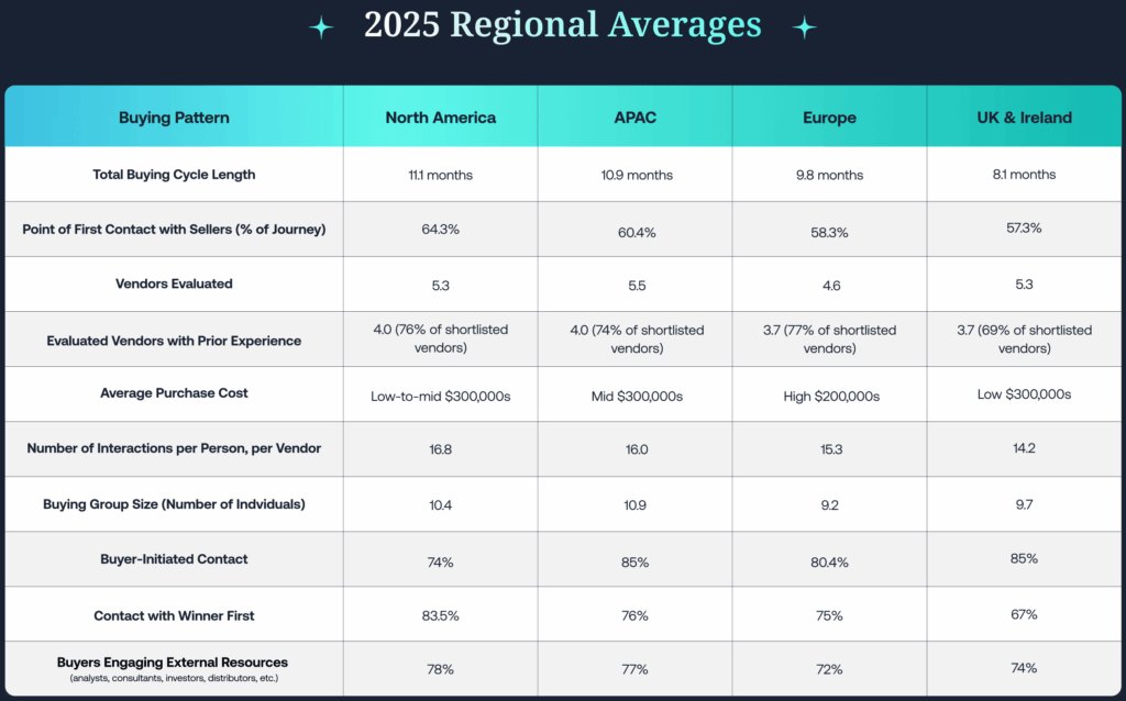 6sense’s 2025 Buyer Experience Report found: 95% of the time, the winning vendor was already on the buyer’s shortlist on day one. And the vendor the buyer contacts first wins roughly 80% of deals.