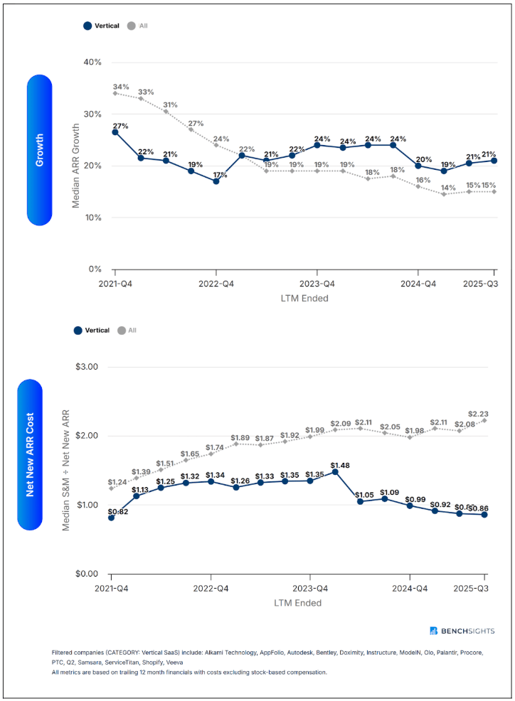 Vertical SaaS companies are the ones maintaining growth and improving efficiency. They know exactly who they serve and why those customers can’t live without them.